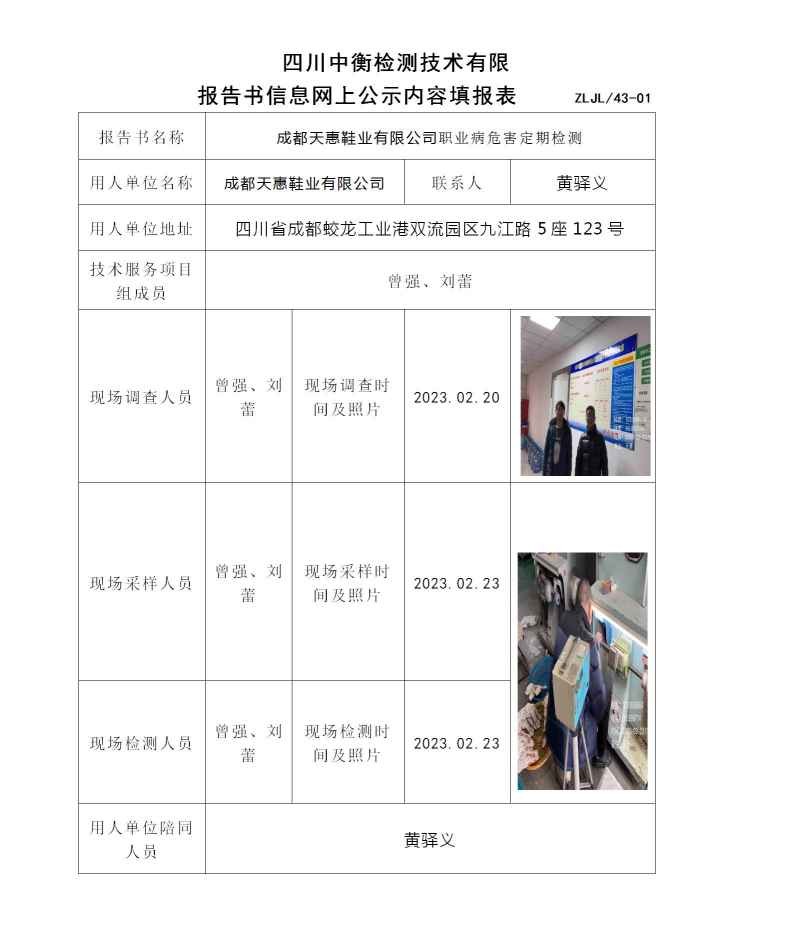 成都天惠鞋業(yè)有限公司職業(yè)病危害定期檢測(cè)