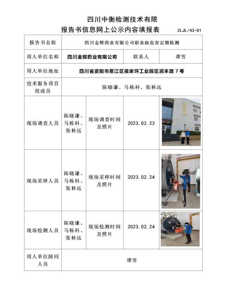 四川金輝藥業(yè)有限公司職業(yè)病危害定期檢測(cè)