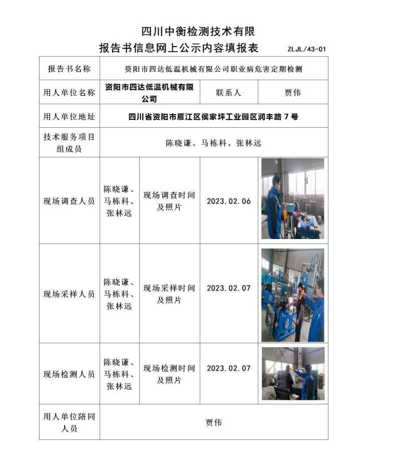 資陽(yáng)市四達(dá)低溫機(jī)械有限公司職業(yè)病危害定期檢測(cè)
