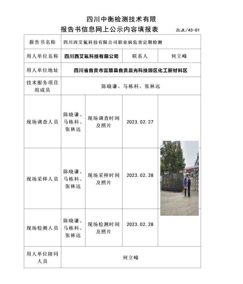 四川西艾氟科技有限公司職業(yè)病危害定期檢測