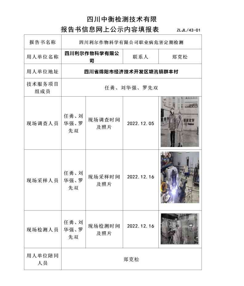 四川利爾作物科學(xué)有限公司職業(yè)病危害定期檢測