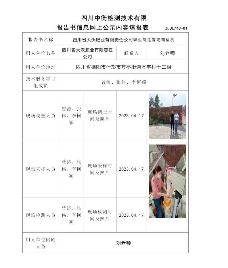 四川省大沃肥業(yè)有限責(zé)任公司職業(yè)病危害定期檢測(cè)