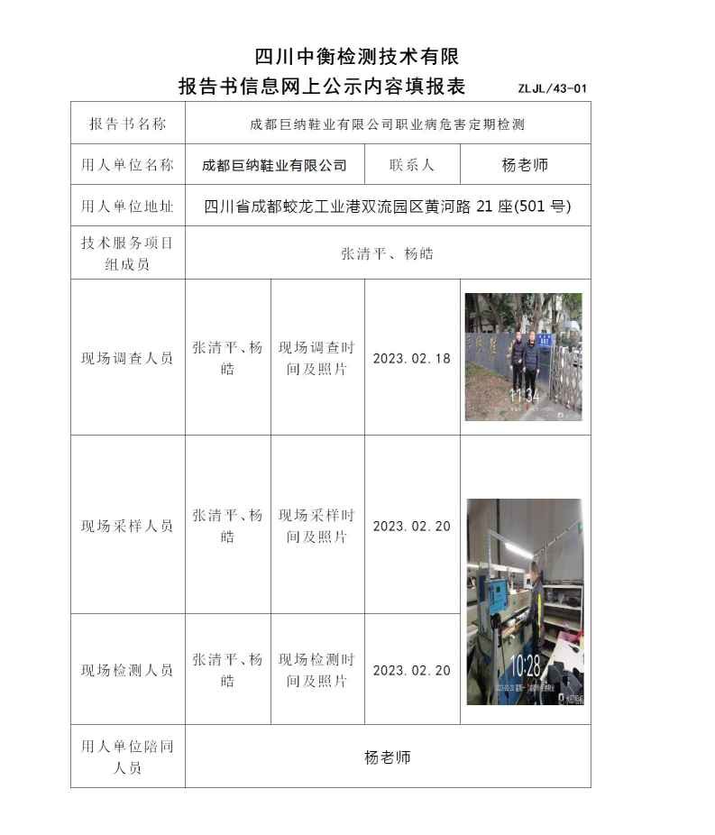 成都巨納鞋業(yè)有限公司職業(yè)病危害定期檢測