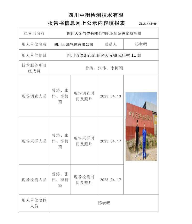 四川天源氣體有限公司職業(yè)病危害定期檢測