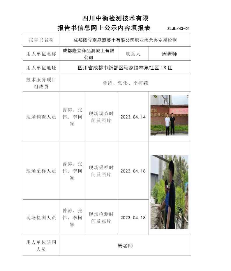 成都隆立商品混凝土有限公司職業(yè)病危害定期檢測