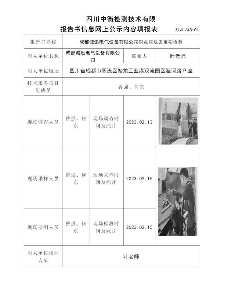 成都誠迅電氣設(shè)備有限公司職業(yè)病危害定期檢測
