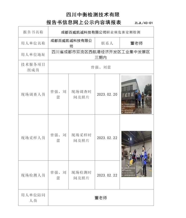 成都百威凱誠科技有限公司職業(yè)病危害定期檢測(cè)