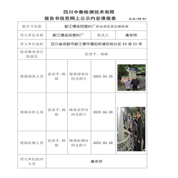 都江堰金陽塑料廠職業(yè)病危害定期檢測