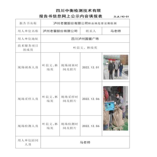 瀘州老窖股份有限公司職業(yè)病危害定期檢測(cè)