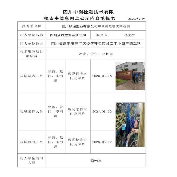 四川欣城塑業(yè)有限公司職業(yè)病危害定期檢測