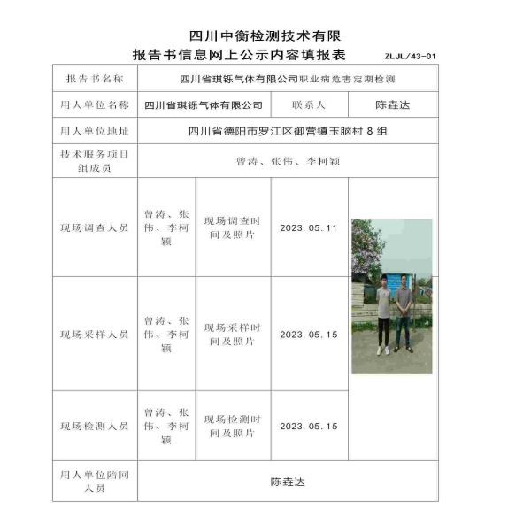四川省琪鑠氣體有限公司職業(yè)病危害定期檢測