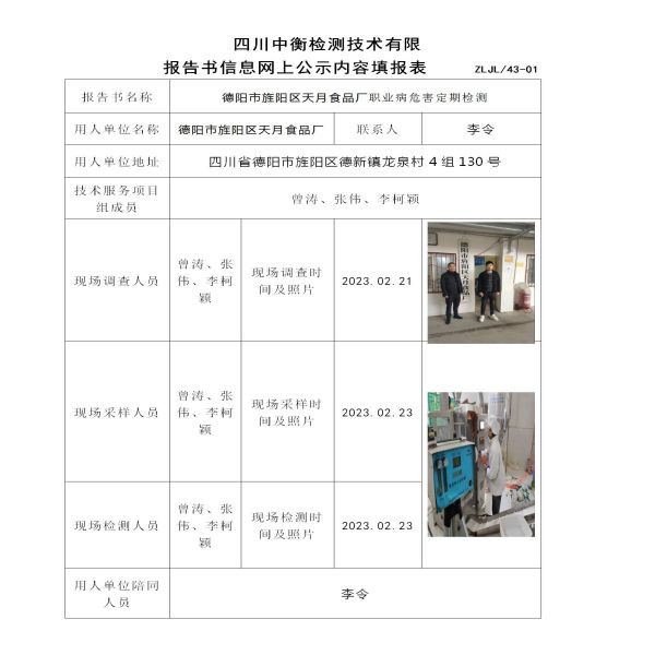 德陽市旌陽區(qū)天月食品廠定期檢測