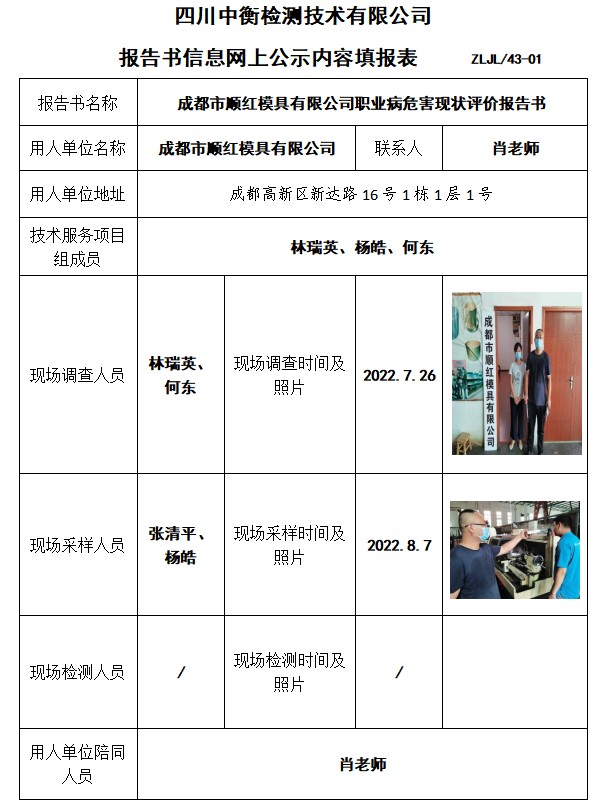 成都市順紅模具有限公司現(xiàn)狀評(píng)價(jià)