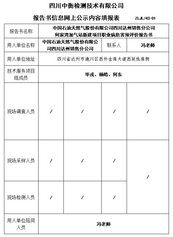 中國石油天然氣股份有限公司四川達(dá)州銷售分公司 何家灣加氣站新建項(xiàng)目預(yù)評價(jià)