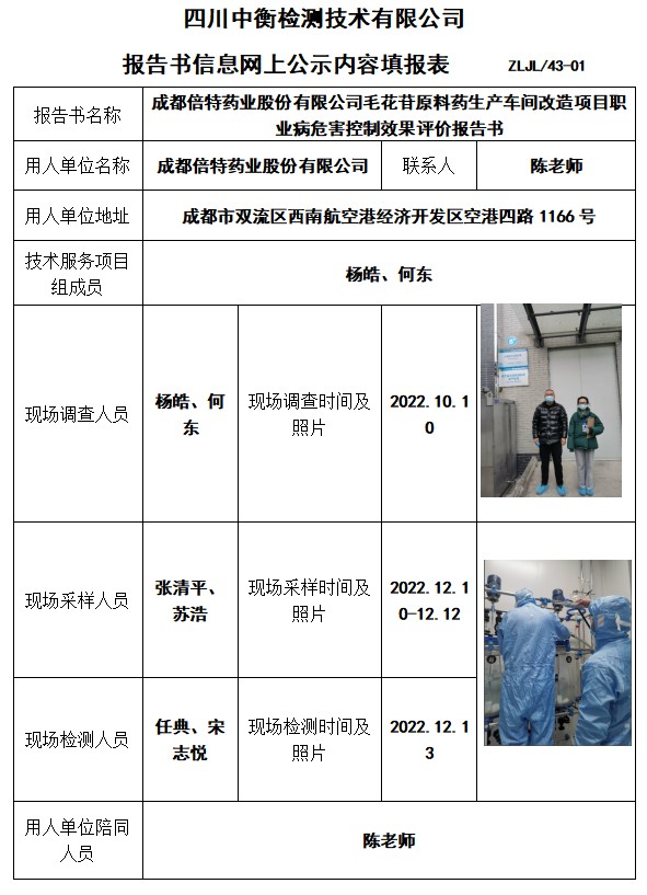 成都倍特藥業(yè)股份有限公司毛花苷原料藥生產(chǎn)車間改造項目控制效果評價