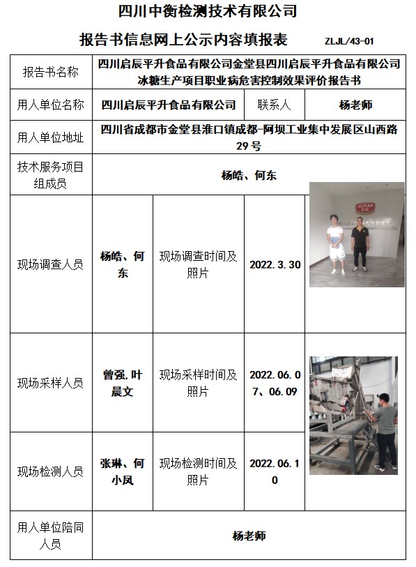 四川啟辰平升食品有限公司金堂縣四川啟辰平升食品有限公司冰糖生產(chǎn)項(xiàng)目控制效果評(píng)價(jià)
