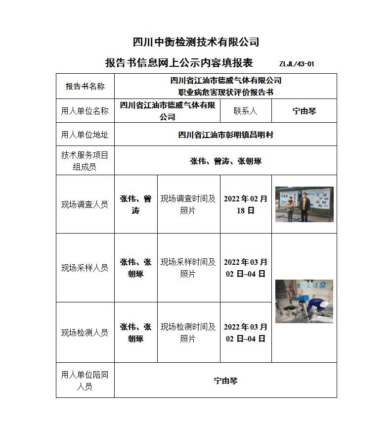 四川省江油市德威氣體有限公司職業(yè)病危害現(xiàn)狀評價