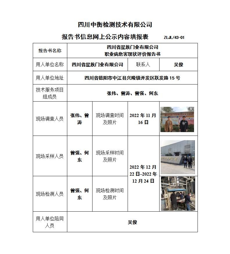 四川省星族門業(yè)有限公司 職業(yè)病危害現(xiàn)狀評價