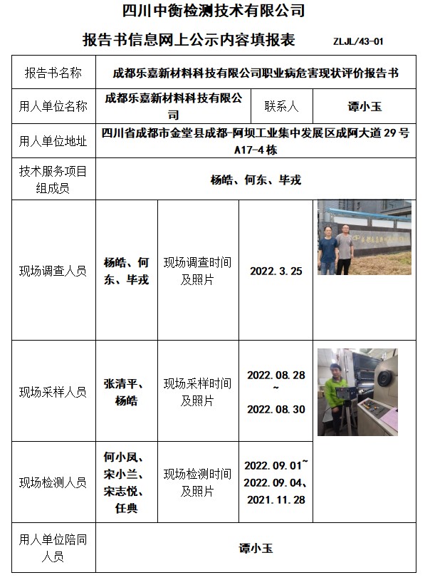 成都樂嘉新材料科技有限公司現(xiàn)狀評(píng)價(jià)
