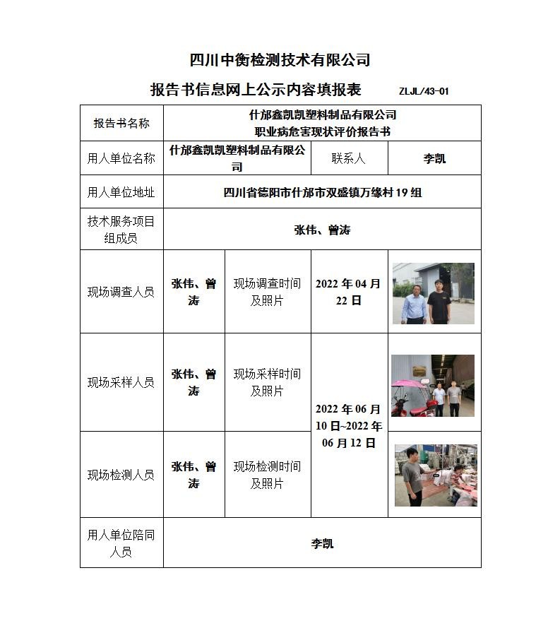 什邡鑫凱凱塑料制品有限公司 職業(yè)病危害現(xiàn)狀評價(jià)