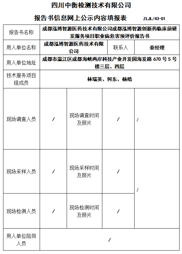 成都泓博智源醫(yī)藥技術(shù)有限公司成都泓博智源創(chuàng)新藥臨床前研發(fā)服務(wù)項(xiàng)目預(yù)評(píng)價(jià)