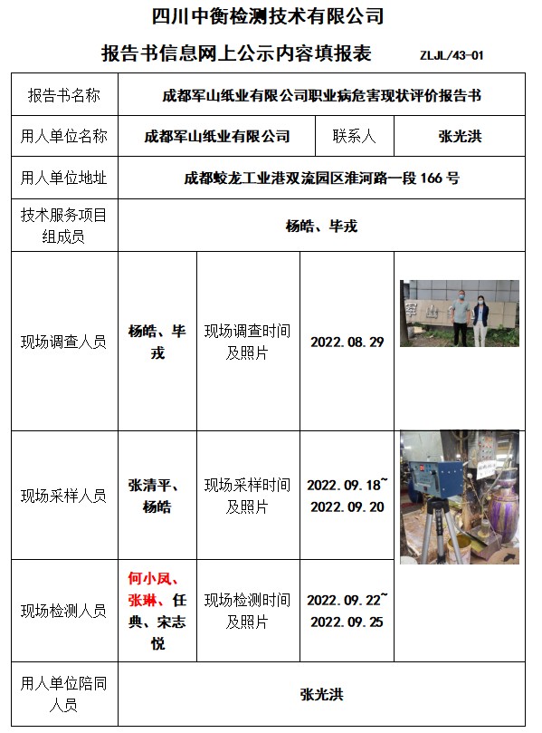 成都軍山紙業(yè)有限公司現(xiàn)狀評(píng)價(jià)