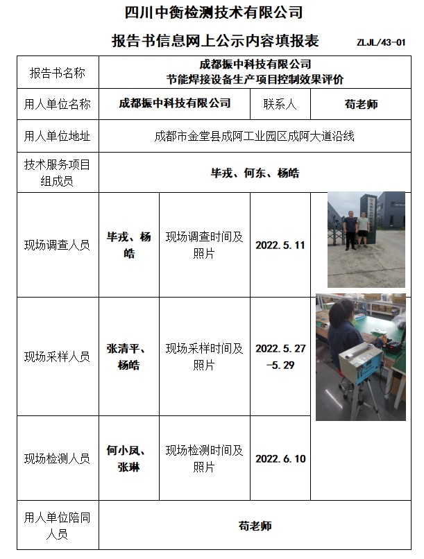 成都振中科技有限公司 節(jié)能焊接設(shè)備生產(chǎn)項(xiàng)目控制效果評(píng)價(jià)