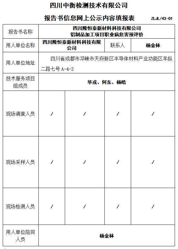 四川隆恒泰新材料科技有限公司 鋁制品加工項目預(yù)評價