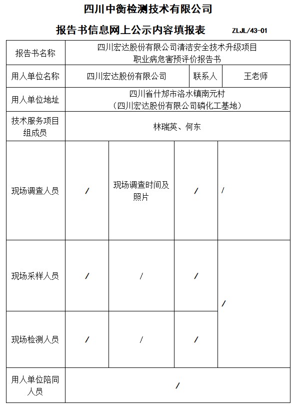 四川宏達(dá)股份有限公司清潔安全技術(shù)升級項目預(yù)評價