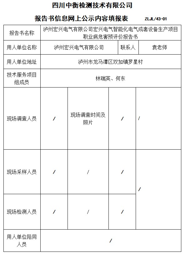 瀘州宏興電氣有限公司宏興電氣智能化電氣成套設(shè)備生產(chǎn)項目預評價