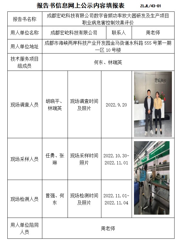 成都宏屹科技有限公司數(shù)字音頻功率放大器研發(fā)及生產(chǎn)項(xiàng)目控制效果評(píng)價(jià)