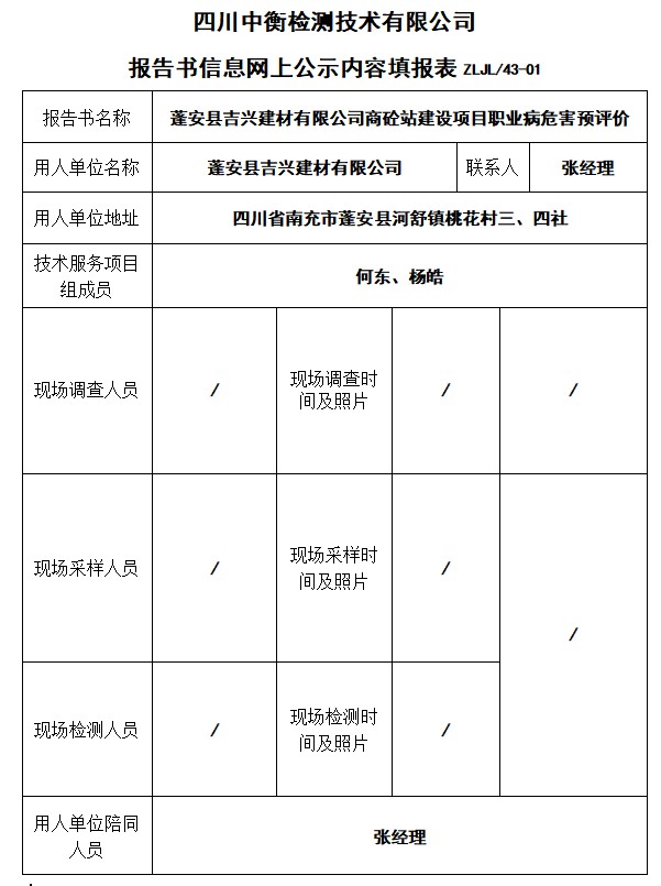 蓬安縣吉興建材有限公司商砼站建設(shè)項目預(yù)評價