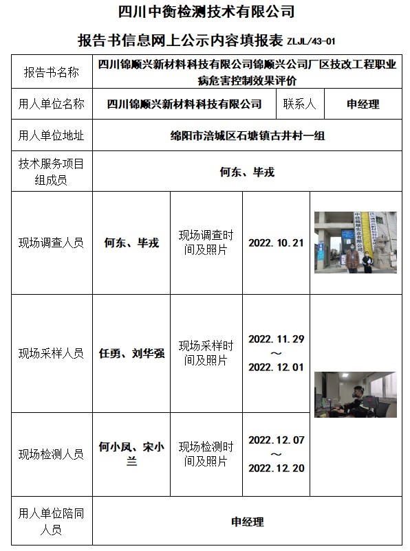 四川錦順興新材料科技有限公司錦順興公司廠區(qū)技改工程控制效果評(píng)價(jià)