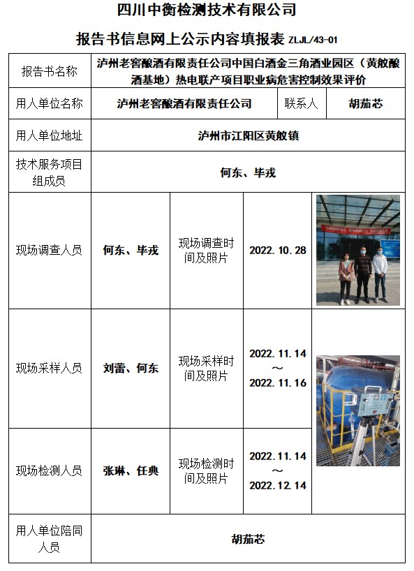 瀘州老窖釀酒有限責(zé)任公司中國(guó)白酒金三角酒業(yè)園區(qū)(黃艤釀酒基地)熱電聯(lián)產(chǎn)項(xiàng)目控制效果評(píng)價(jià)