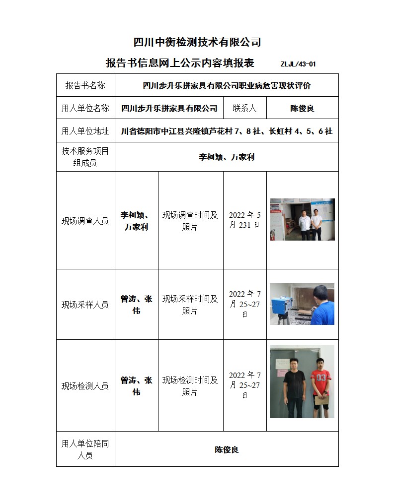四川步升樂拼家具有限公司 職業(yè)病危害現(xiàn)狀評價(jià)報(bào)告書