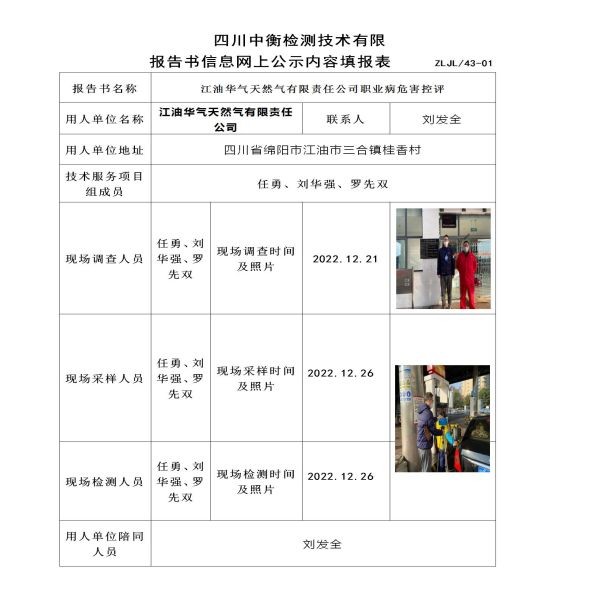 江油華氣天然氣有限責(zé)任公司定期檢測(cè)