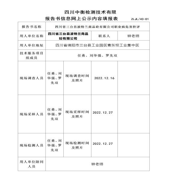 四川省三臺(tái)縣波特蘭商品砼有限公司定期檢測(cè)