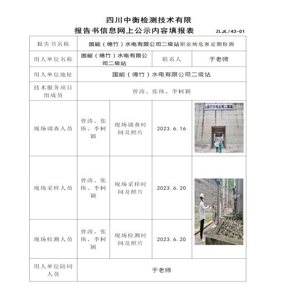國能(綿竹)水電有限公司二級站職業(yè)病危害定期檢測
