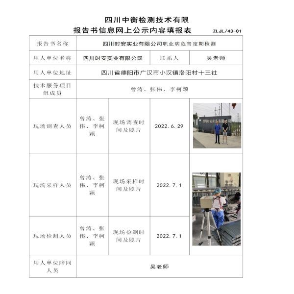 四川時(shí)安實(shí)業(yè)有限公司定期檢測(cè)