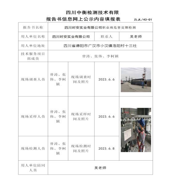 四川時安實業(yè)有限公司定期檢測