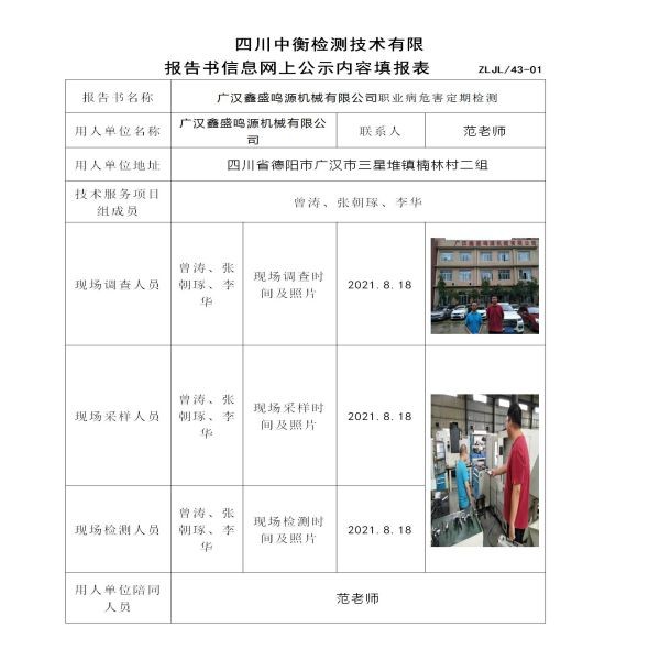 廣漢鑫盛鳴源機(jī)械有限公司定期檢測(cè)