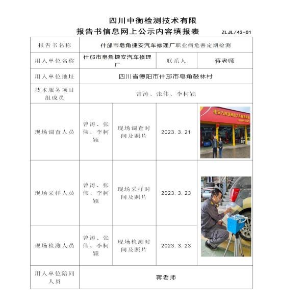 什邡市皂角捷安汽車修理廠定期檢測