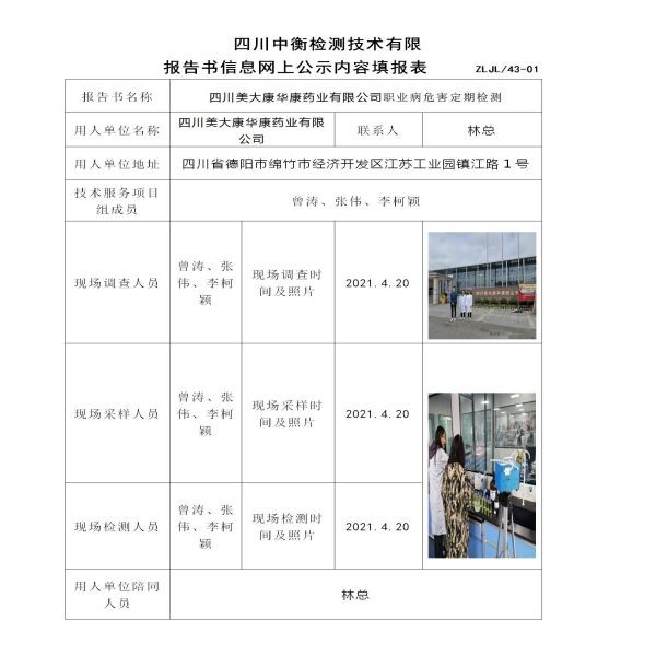 四川美大康華康藥業(yè)有限公司職業(yè)病危害定期檢測