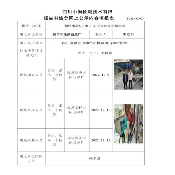 綿竹市俊躍白肥廠定期檢測