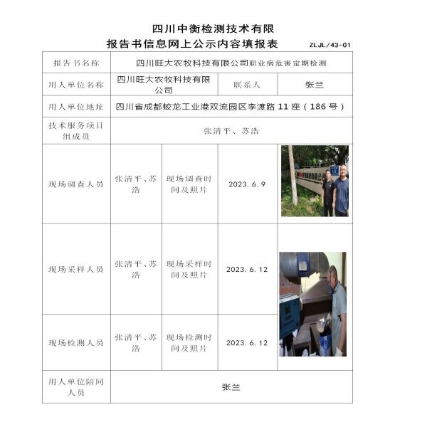 四川旺大農(nóng)牧科技有限公司定期檢測