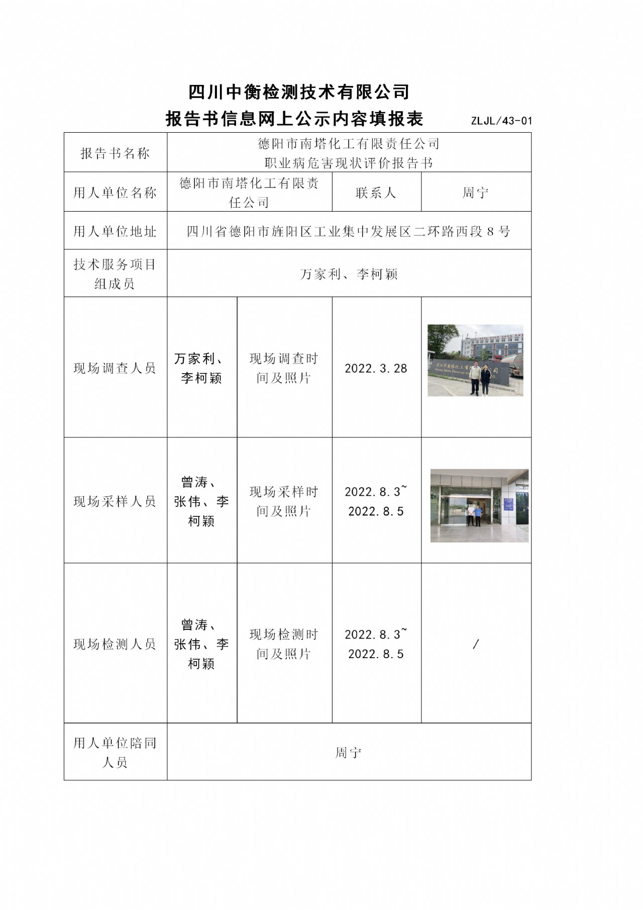 德陽(yáng)市南塔化工有限責(zé)任公司職業(yè)病危害現(xiàn)狀評(píng)價(jià)