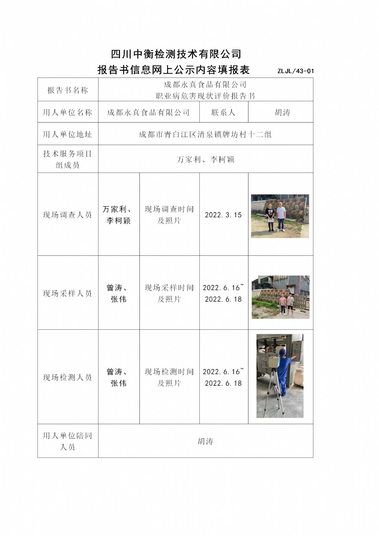 成都永真食品有限公司 職業(yè)病危害現(xiàn)狀評(píng)價(jià)