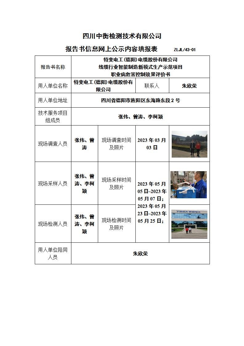 特變電工(德陽(yáng))電纜股份有限公司“線纜行業(yè)智能制造新模式生產(chǎn)示范項(xiàng)目”職業(yè)病危害控制效果評(píng)價(jià)