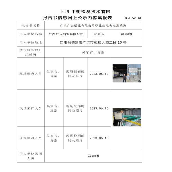 廣漢廣云鋁業(yè)有限公司定期檢測(cè)