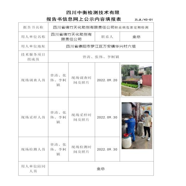 四川省綿竹天化助劑有限責任公司定期檢測